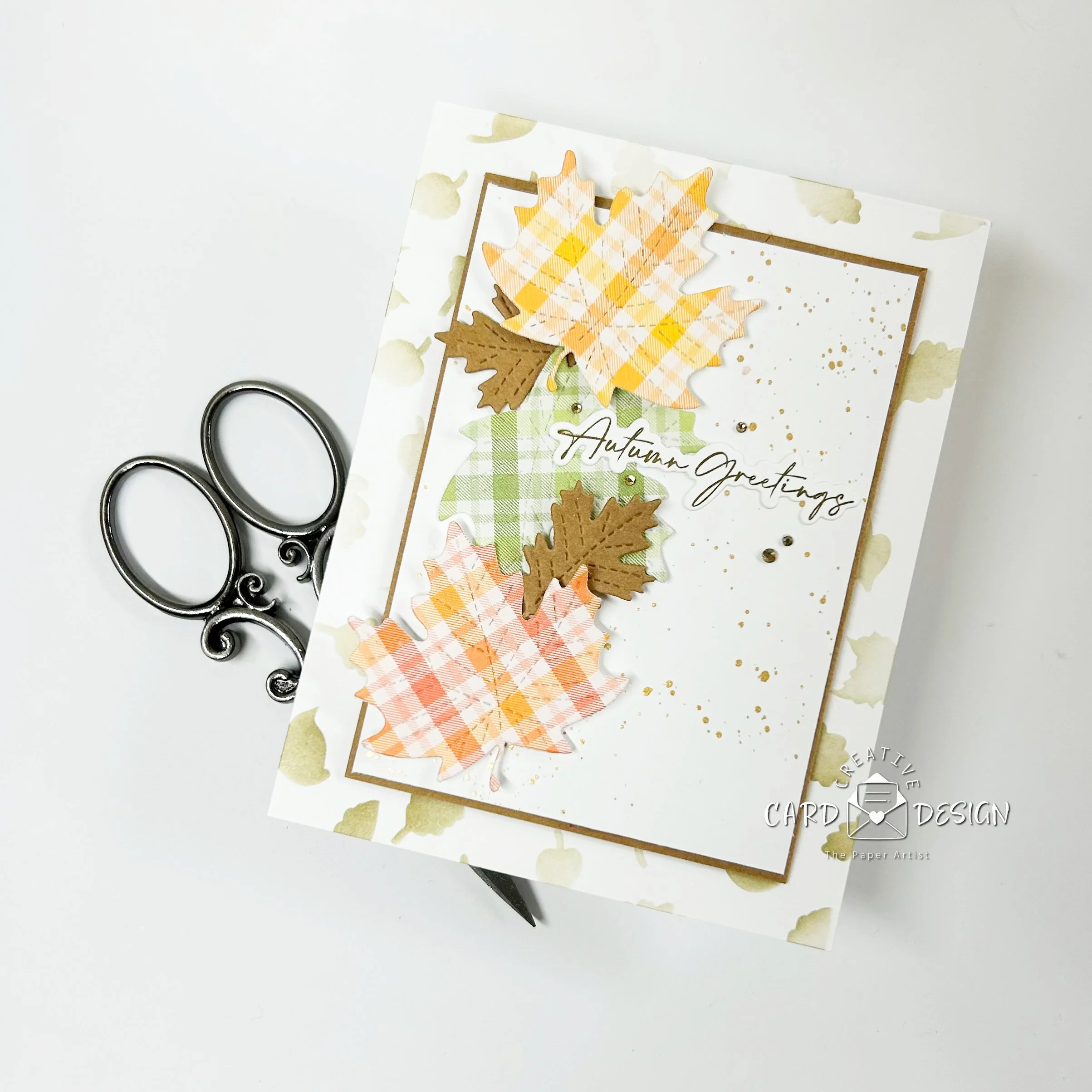The leaves are turning, the air is getting crisp, and my coffee has officially transitioned from iced to “extra hot, please.” That can only mean one thing—it’s autumn card-making season! And while the real trees outside might be dropping crunchy brown leaves all over my yard, I thought I’d keep things a little prettier (and less rake-required) with these cheerful plaid leaves. Because let’s be honest, plaid makes everything better—even Monday mornings.