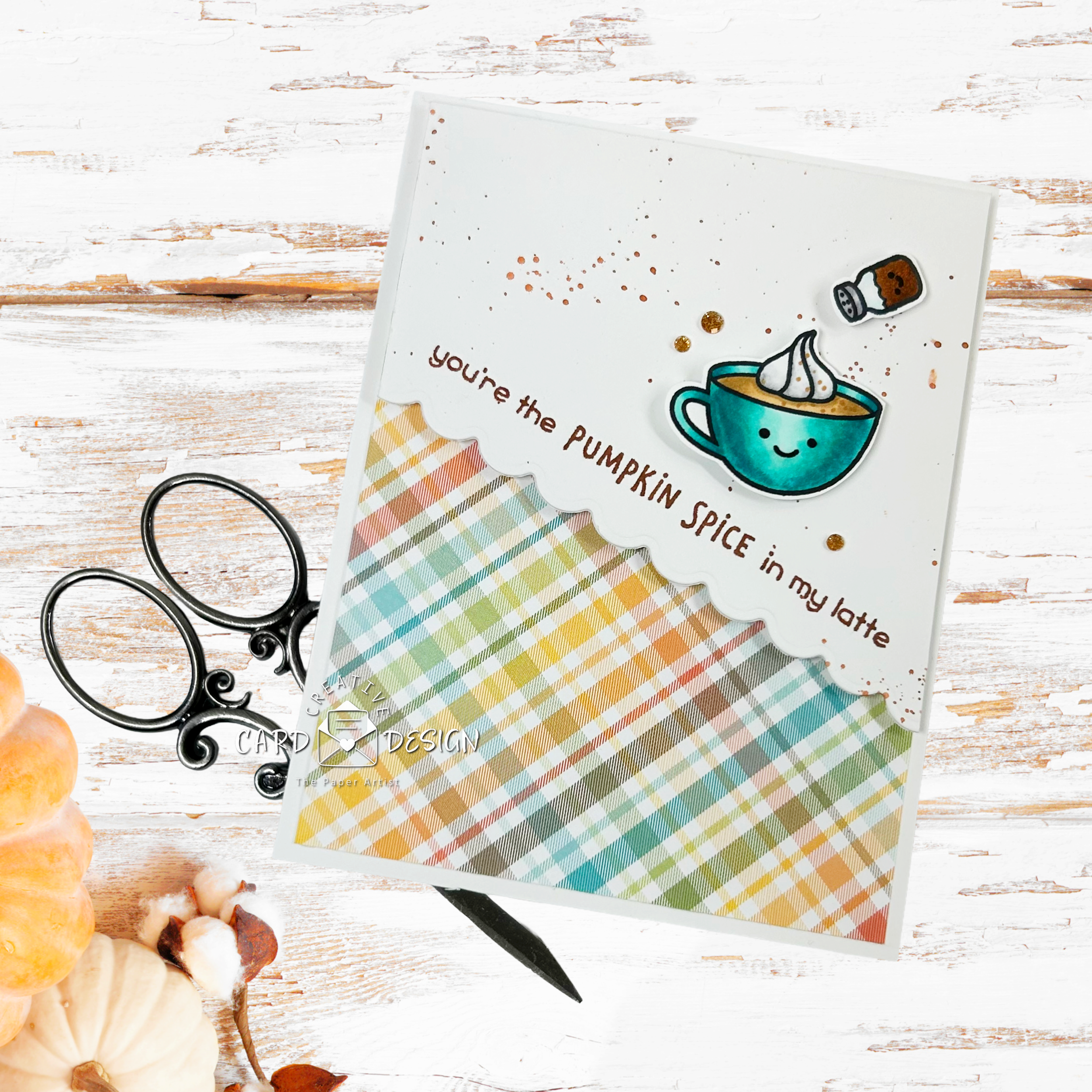 This cozy little design is all about warm plaid, frothy coffee, and a dash of spice (because what’s fall without it?). Honestly, it’s the kind of card that pairs best with a hot cuppa and maybe a butter tart on the side—because we Canadians know how to do cozy right.