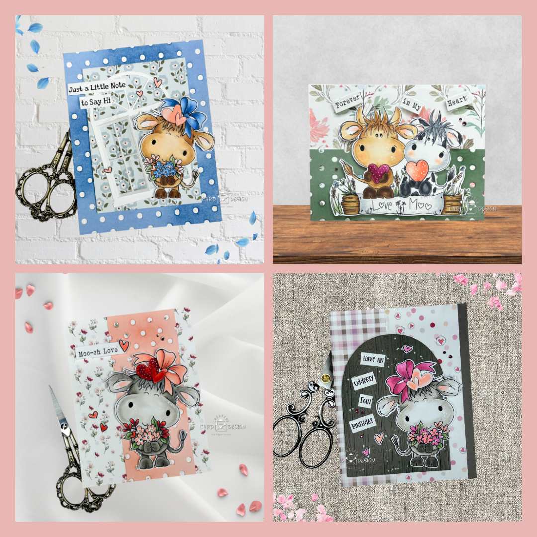 Seeing all of these Udderly Cute cow cards together in one place really shows just how much fun this little series has been. Each card brought its own mix of color, patterns, and personality — from sweet and floral to cozy and playful — yet they all share that same irresistible cow charm. It’s been such a joy to stretch one adorable character into so many different designs… and let’s be honest, these cows have worked harder than a dairy farm in July. I hope this little herd has sparked a few creative ideas (and plenty of smiles) along the way.