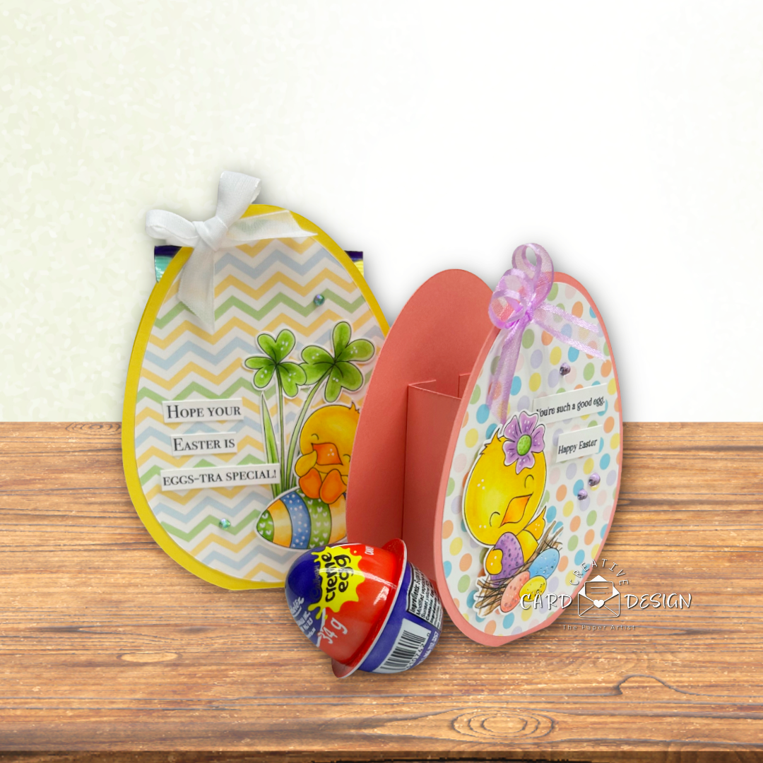 At first glance, it looks like a sweet, decorative Easter egg—but here’s where the magic happens. The front and back layers fit together to form the egg shape, with a partial box cleverly sandwiched in between. That hidden space is perfect for tucking in a favorite Easter treat… or a few!