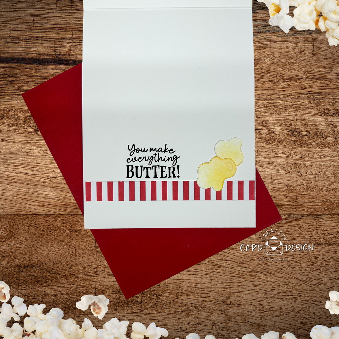 I’m going with yes — because not all Valentine cards need hearts, flowers, and mushy-gushy sentiments. Some of us prefer humor, popcorn, and a good pun… and this card checks all those boxes.